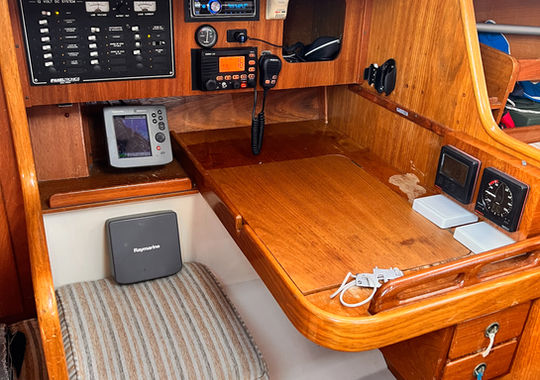 Piloto automatico al sector “Raymarine” display “Raymarine” cerca al timón.Plotter B&G T12¨ en el timon. Calefactor disel “Webasto” , Enrollador harken cacerola inoxidable, Heladera 2024 “Danfoss”, Termotanque.
