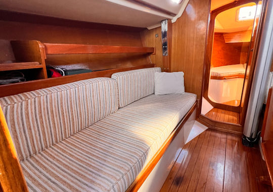 Stereo “Pioneer” bluetooth con 2 Parlantes “Fusión” interior , Cabulleria, Circuito de agua potable, Elementos de seguridad regalmentarios, luz de navegación y tope de mástil, 2 bomba de achique en centina y panel solar. Carpa “Sumbrella”, cubre mayor “Sunbrella”. Colchonetas exterior.